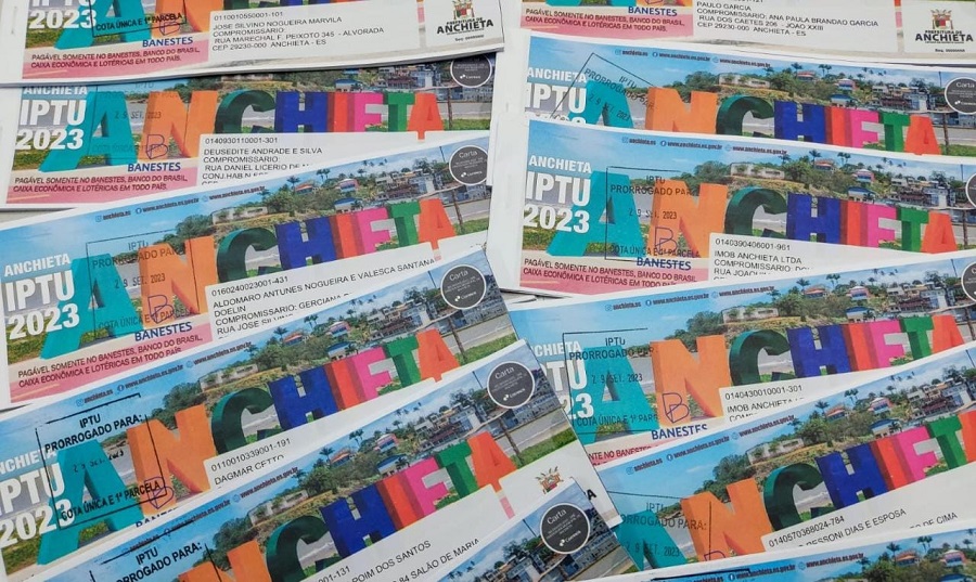 Os carnês físicos para pagamento do Imposto Predial Territorial Urbano (IPTU) 2023 de Anchieta já estão sendo entregues, pelo Correios, no endereço dos proprietários dos imóveis. A Prefeitura de Anchieta prorrogou os prazos e os contribuintes têm agora até 29 de setembro para pagar o imposto, em cota única, com 15%. Já quem for pagar a taxa de localização e funcionamento tem a mesma data para ter 10% de desconto. As datas foram definidas pelo Decreto nº 6405/2023.