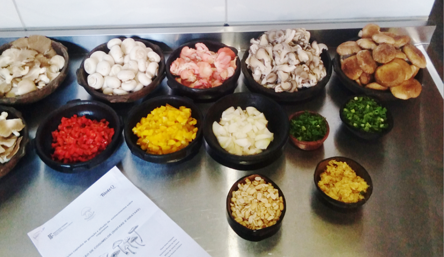 Os participantes também tiveram uma “Aula-Show”, com preparo e degustação de receitas à base de cogumelos Shiitake, Shimeji e Champion, produzida pelas proprietárias e chefs de cozinha do Flores e Sabores, Bárbara Rossi e Carolina Gontijo. Elas usaram os cogumelos trazidos de Venda Nova do Imigrante pelo professor Deusélio Fiorezi.