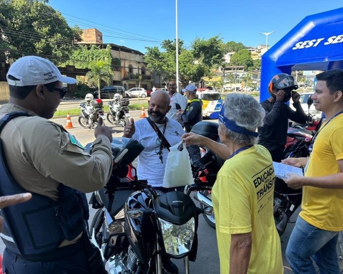 Com foco no motociclista, o DETRAN\ES realizou, na manhã desta sexta-feira (05), o projeto “Moto e vida em ação”, no município de Cariacica, em parceria com o Batalhão de Trânsito da Polícia Militar (BPTran), Prefeitura de Cariacica, por meio da Secretaria de Defesa Social, além do Serviço Social do Transporte e do Serviço Nacional de Aprendizagem do Transporte (SEST/SENAT), da Faculdade Emescam e da concessionária Moto Vena.
