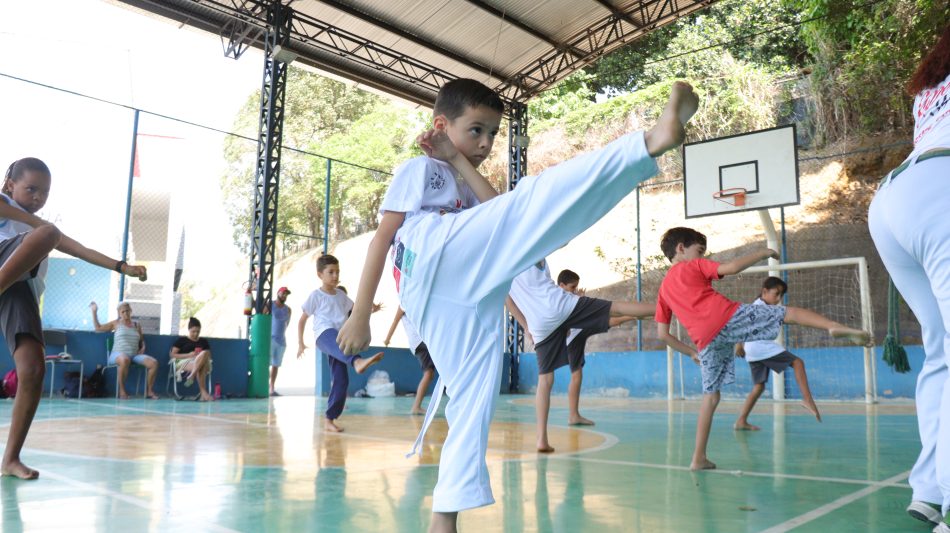Unindo educação, esporte e cultura, os alunos da EMEF Araçatiba crescem aprendendo com brincadeiras. A capoeira é uma arte ancestral. Fugidos da servidão, os povos afro-brasileiros usavam um estilo de luta composto de movimentos furtivos e executados de modo rasteiro. Esse modo de luta e resistência ficou conhecido como capoeira Angola. Aos poucos, em seus quilombos, os povos negros adicionaram elementos de dança e música a prática, tornando-se, também, um evento cultural de celebração da liberdade.