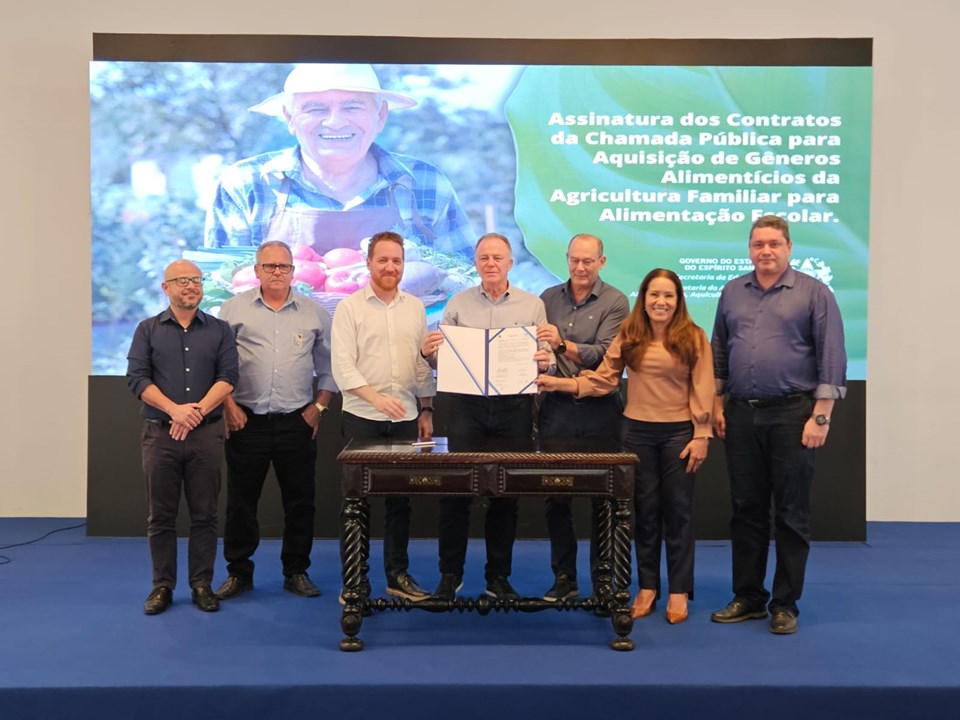 “A assinatura desses contratos fortalece nosso compromisso com o desenvolvimento sustentável do Espírito Santo. A Secretaria de Estado da Agricultura, Abastecimento, Aquicultura e Pesca tem atuado como ponte entre a Secretaria da Educação e o campo. Nosso papel foi garantir que os agricultores familiares tivessem orientação técnica e acesso aos processos. Ou seja, valorizamos a produção local e, ao mesmo tempo, investimos na alimentação saudável dos nossos estudantes”, explicou o secretário de Estado da Agricultura, Enio Bergoli.