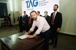 Para possibilitar melhorias no sistema público de educação, Governo do Estado, Tribunal de Contas (TCE-ES), Anchieta e mais 54 municípios formalizaram uma parceria, nesta quinta-feira (15), na sede do TCE. Ao todo, 51 chefes de Executivo Municipal rubricaram o acordo durante o evento. Outros quatro o fizeram em outros momentos.