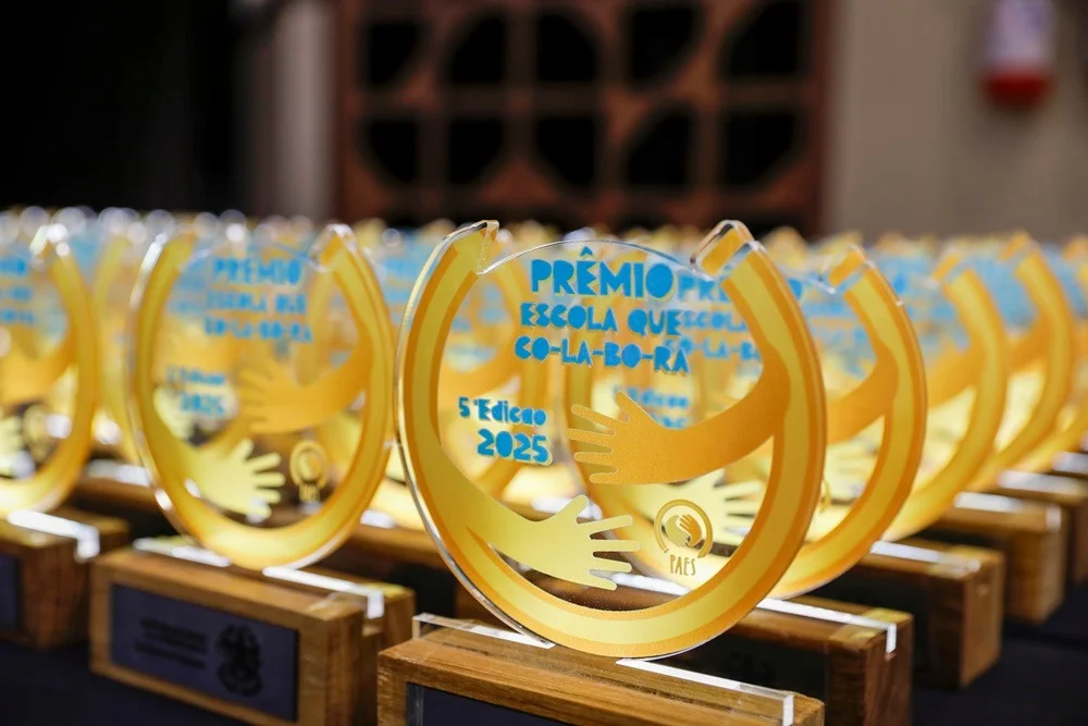 A Prefeitura de Guarapari, por meio da Secretaria Municipal da Educação, participou nesta segunda-feira (30) da cerimônia de entrega do Prêmio Escola que Colabora – 5ª edição, realizada pelo Governo do Estado, por meio da Secretaria de Estado da Educação (Sedu), em Vitória. O evento reuniu gestores, educadores e representantes das redes públicas de ensino capixabas em um momento de reconhecimento às boas práticas educacionais e ao fortalecimento da aprendizagem.