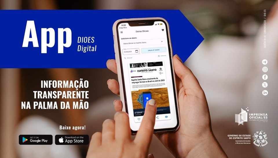 No mês em que se celebra o Dia Mundial do Meio Ambiente, a Imprensa Oficial do Espírito Santo (DIO/ES) apresenta ao público o DIOES Digital, aplicativo gratuito que leva o Diário Oficial do Estado diretamente para a palma da mão, com acesso ágil, moderno e sustentável.