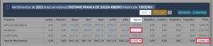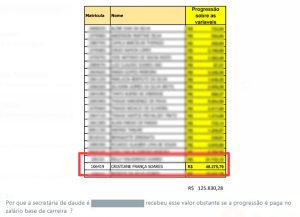 Podemos ainda ir mais adiante, e observar que, somente no mês de agosto deste ano, além do benefício do cálculo da progressão, apresentado no valor de quase R$ 50 mil reais, somando as remunerações básicas, benefícios e gratificações de mais de R$ 6 mil reais mensais, em apenas seis meses desde que assumiu o novo cargo de secretária de saúde (março de 2023), Cristiane teria recebido um total de rendimentos que ultrapassa o valor de R$ 130 mil reais.
