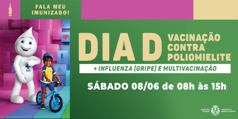 No próximo sábado, dia 08 de junho, a Prefeitura de Marechal Floriano através da Secretaria Municipal de Saúde vai realizar o Dia D de Vacinação contra a Poliomielite.