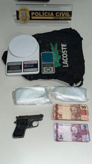 Equipes da Divisão Especializada de Homicídios e Proteção à Pessoa (DHPP) de Guarapari, em Escala Operacional (ISEO), prendeu em flagrante, nessa terça-feira (31), um homem de 21 anos, na orla da Praia do Morro, em Guarapari, por tráfico de drogas e associação para o tráfico de drogas. Com ele, foram apreendidas uma pistola calibre 25 e duas balanças de precisão, além de R$ 200 em espécie.