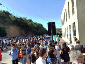 Do lado de fora uma multidão tentava uma vaga para assistir a cerimônia, mas nem todos puderam, uma vez que o salão só tem capacidade para 100 pessoas.