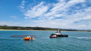 A Samarco realizou nesta quinta-feira (30/11) o Simulado do Plano de Emergência Individual (PEI), Nível 1, no Porto de Ubu, em Anchieta (ES). A atividade simulou uma colisão da lancha da praticagem causando derramamento de óleo no mar. Logo em seguida, empregados (as) e contratados (as) da Samarco, treinados (as) para recolher esse tipo de material no meio ambiente em situações emergenciais, entraram em ação.